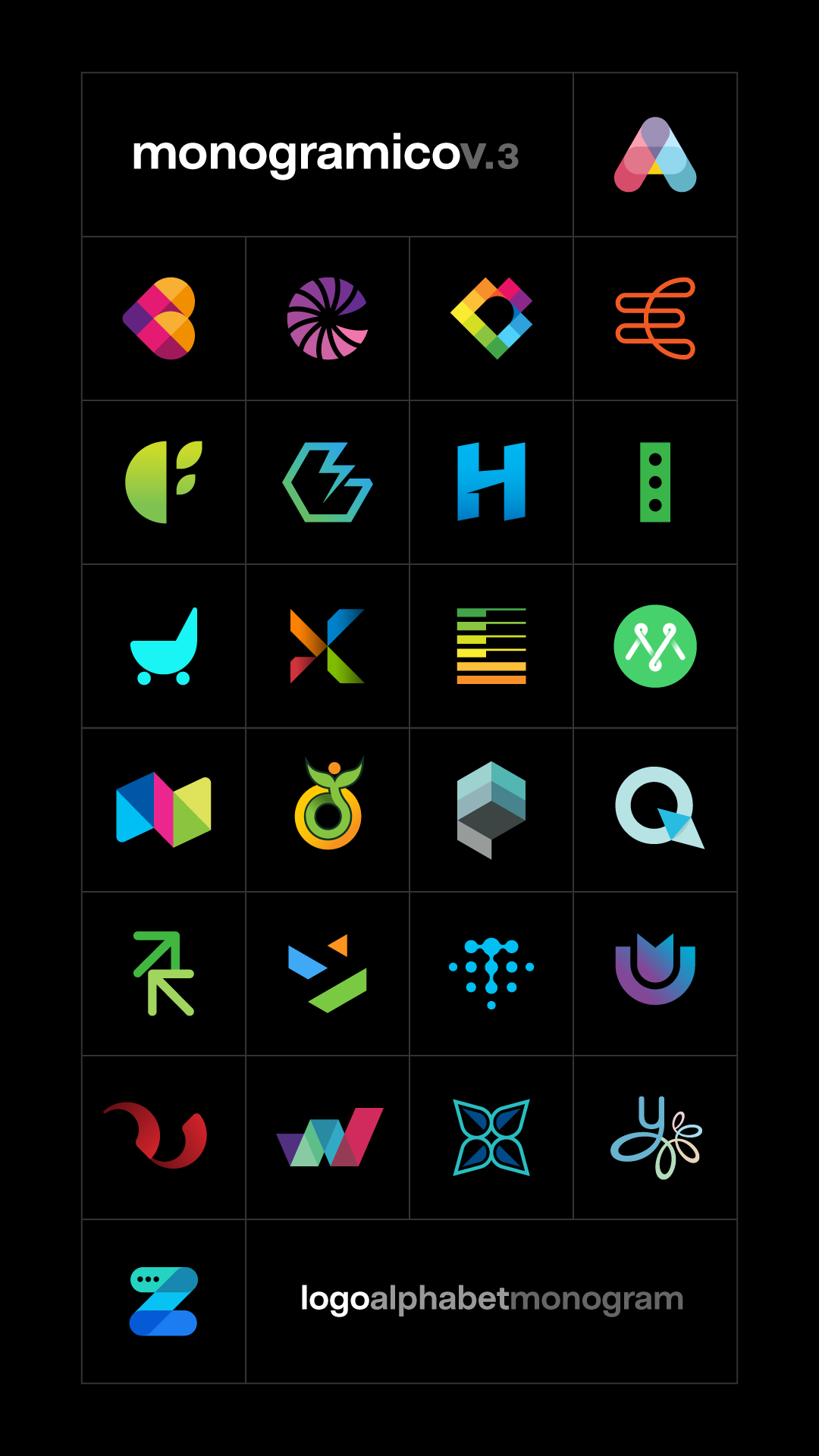 The third edition of Monogramico - client logos created by studio Logoholik forming a monogram alphabet.